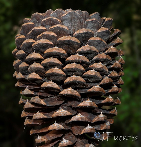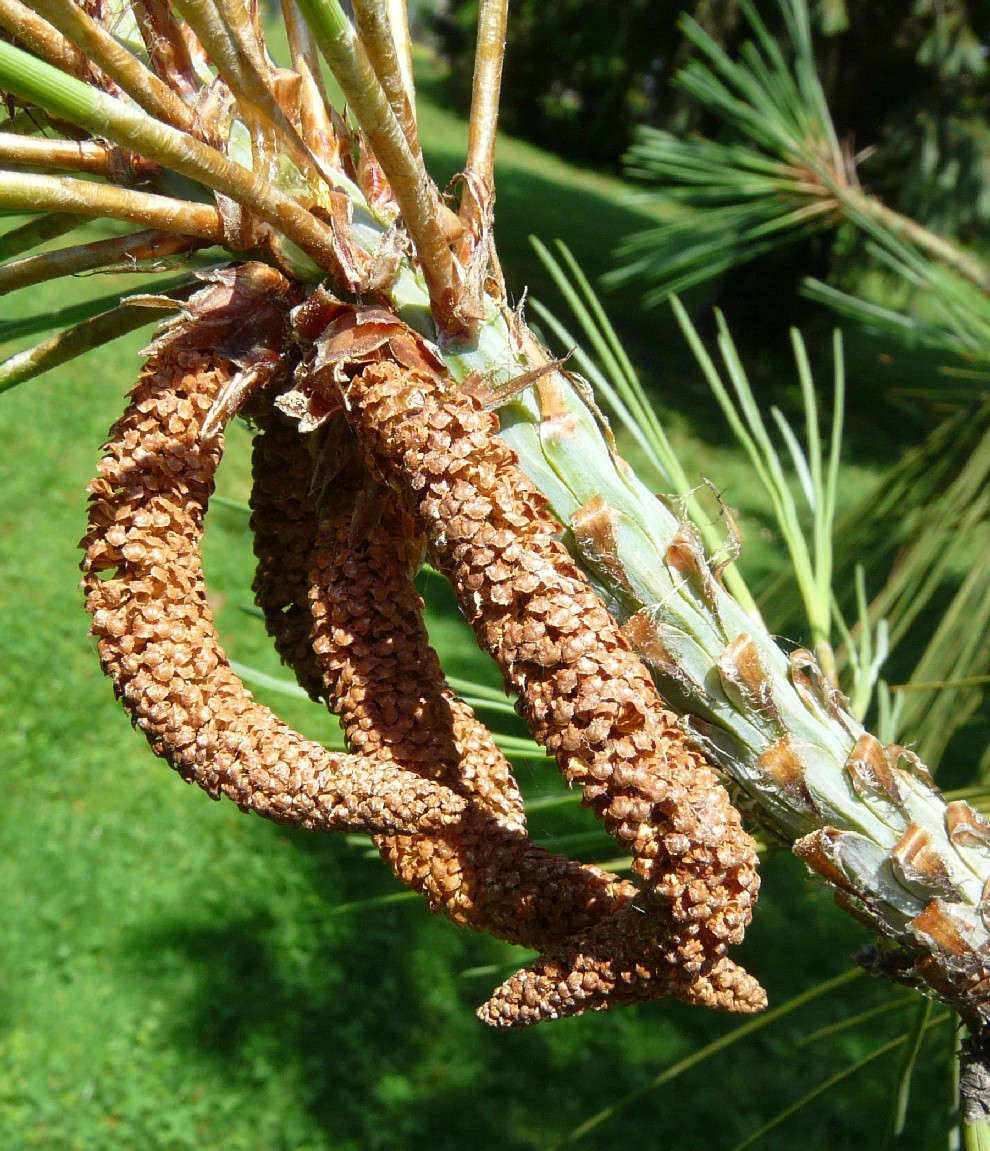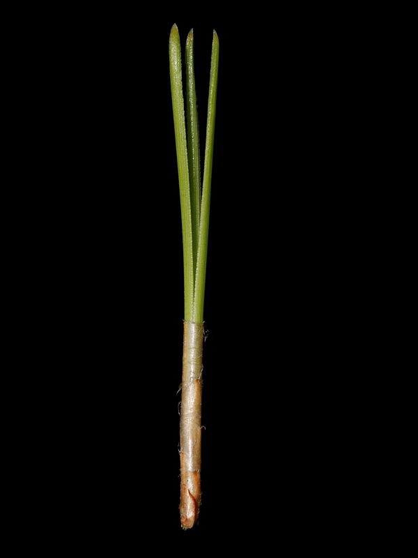 3        Nadeln 20 - 30 cm lang, Knospenschuppen frei, zurückgebogen, Zapfen symmetrisch