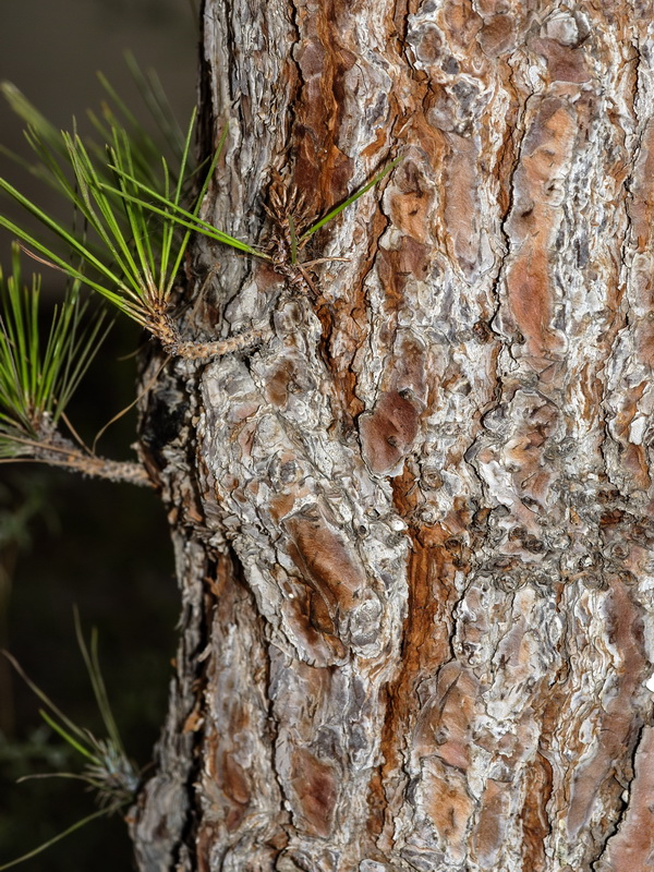 Borke im unteren Teil rissig, jedoch nicht so tief wie bei Pinus ponderosa