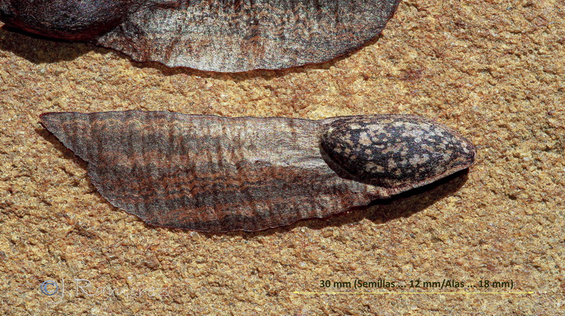 Samen 12 mm lang, 6 mm breit, oft schwarz gefleckt, Flügel 12 - 25 mm lang