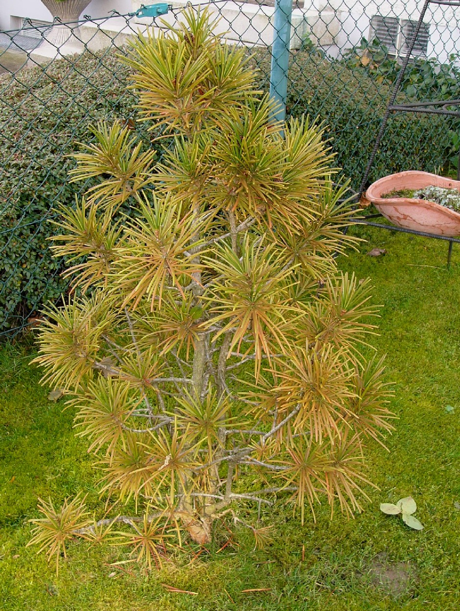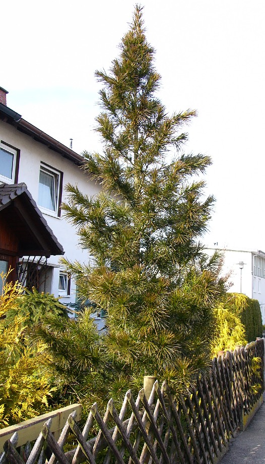 10 - 15 m hoher Baum, schmal kegelfömige Krone mit kurzen, dünnen Ästen. Im unteren Bereich herabhängend
