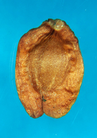 Samen flach, oval, orange-braun, 8 bis 12 mm lang, etwa 8 mm breit, mit schmalem Flügel