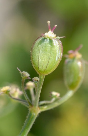 Apiaceae - Blüten weiß, Dolde mit 2 - 6 Strahlen, ohne oder mit wenigen Hüllblättern, Frucht kahl, Stängel kahl, Blätter mehrfach gefiedert, Blättchen fiederschnittig, Fiederabschnitte kurz