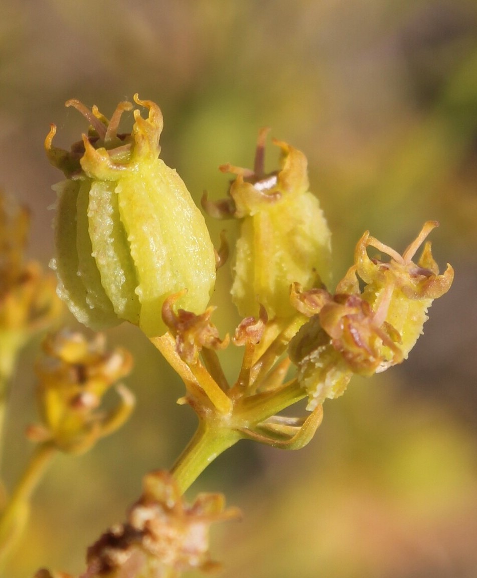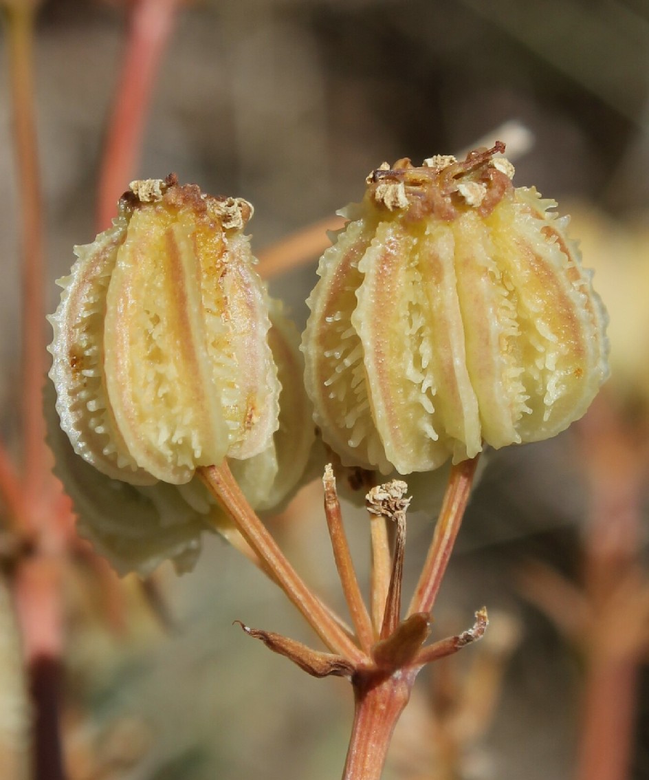 Früchte rundlich, 12 - 17 mm lang, mit scharfen Graten, die warzig- gezähnt sind Stängel gestreift