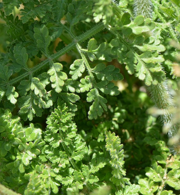 Fiedern 1. Ordnung mit fiederteiligen Abschnitten, dicht behaart