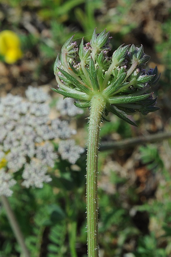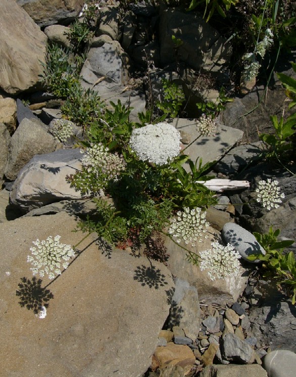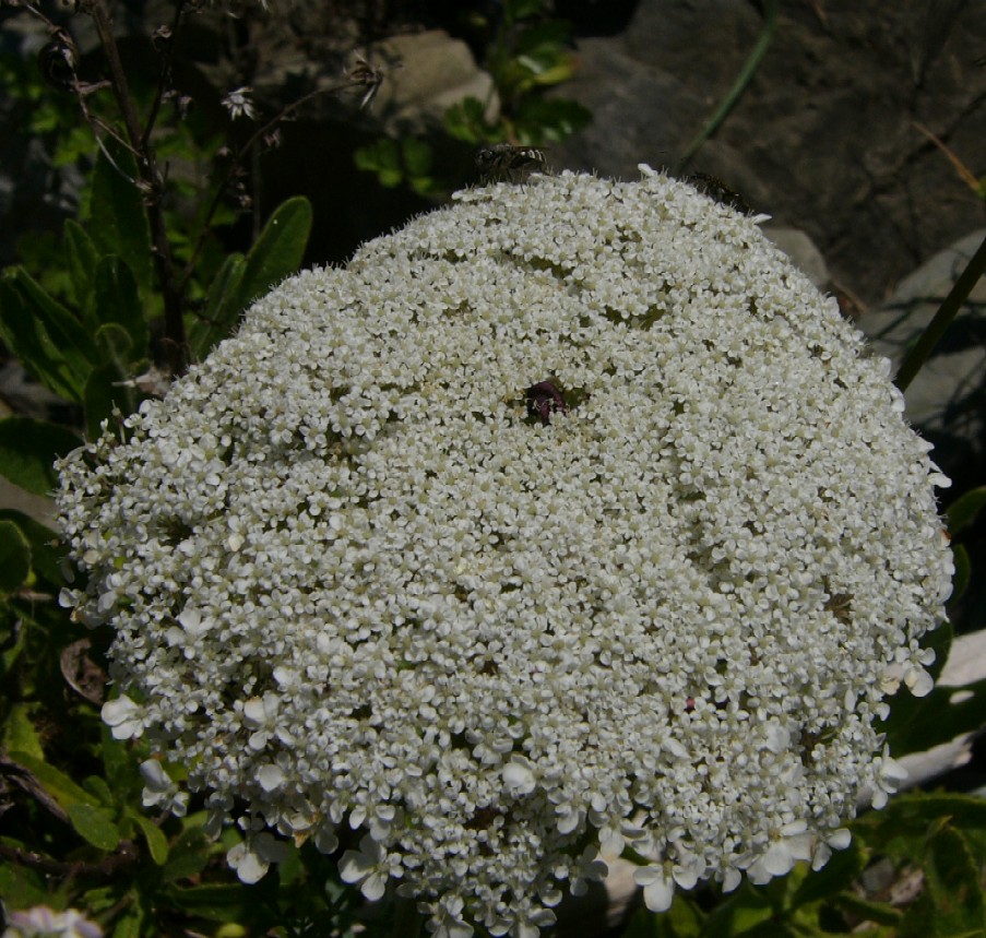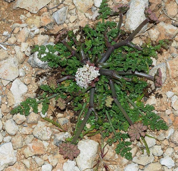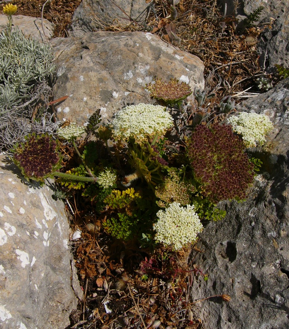 Endemit der Sierra Cantabrica, Spanien Dolden nur 2 - 4 cm im Durchmesser, Hüllblätter mit linealischen Abschnitten Blätter im Umriss länglich, mit linealischen Endfiedern > 5