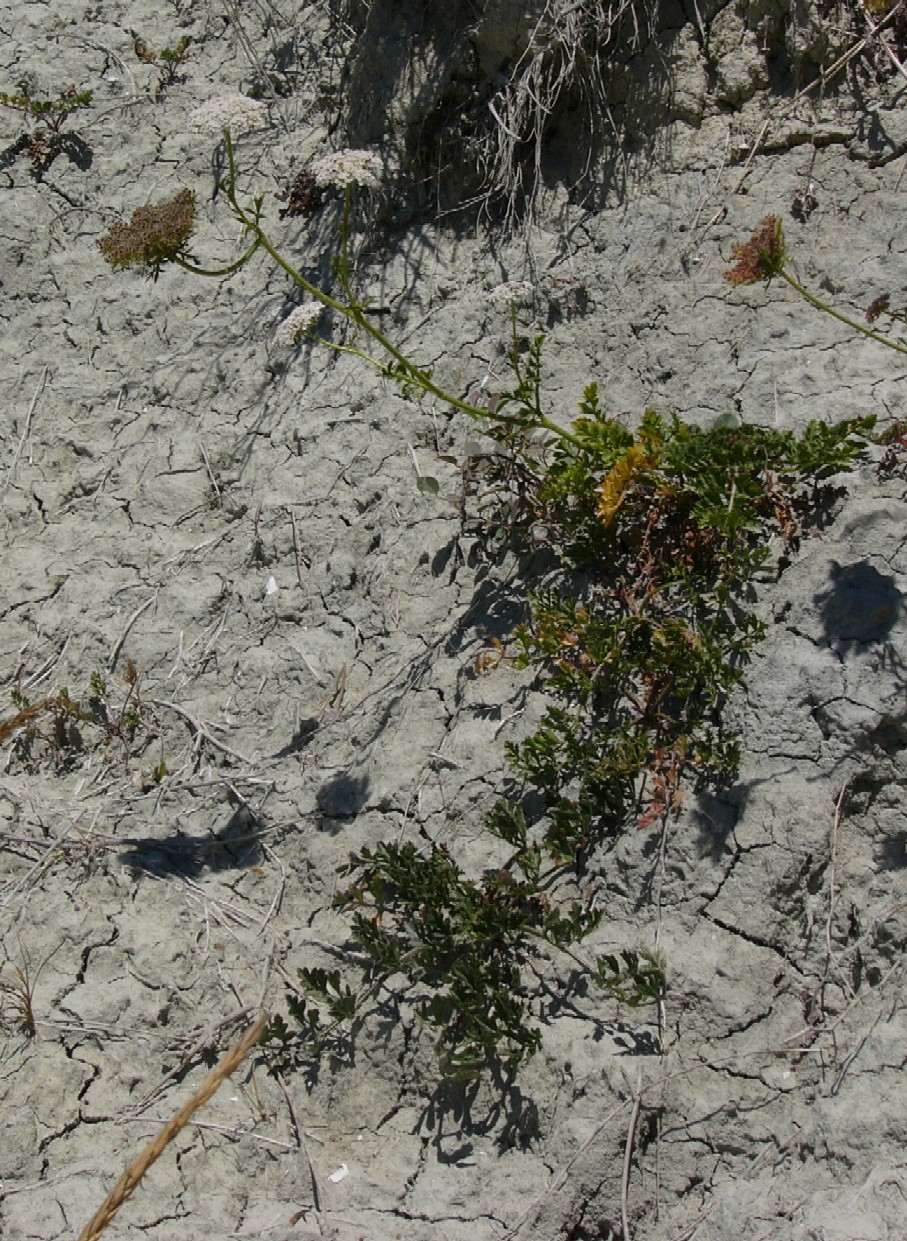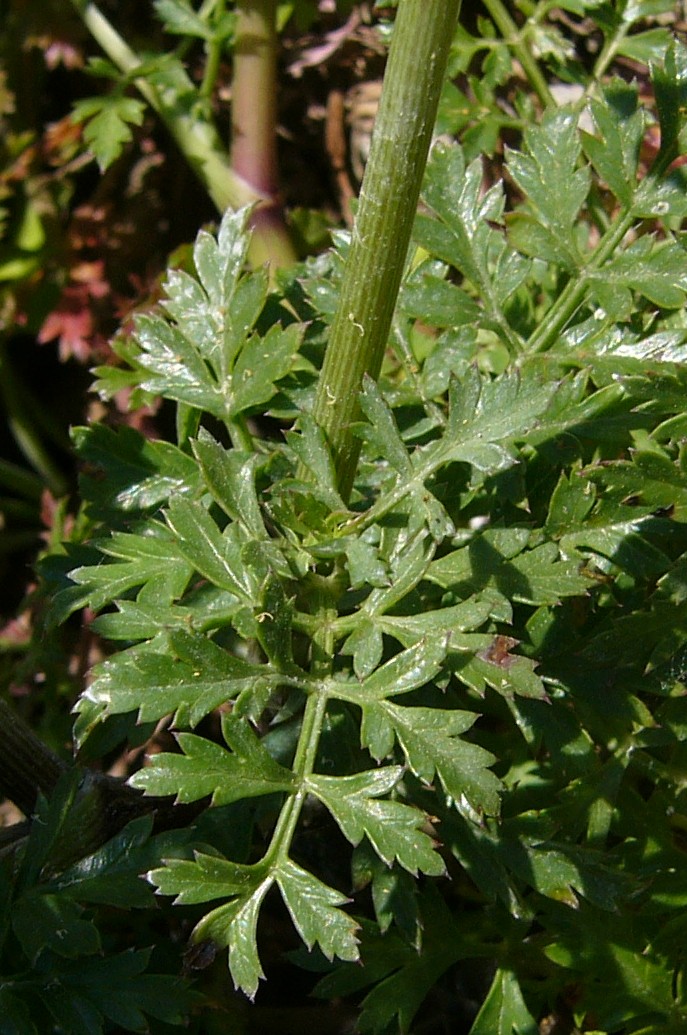Fruchtdolde +/- ausgebreitet Blätter grün, Fiedern 1. Ordnung mit fiederteiligen Abschnitten, oft fast kahl