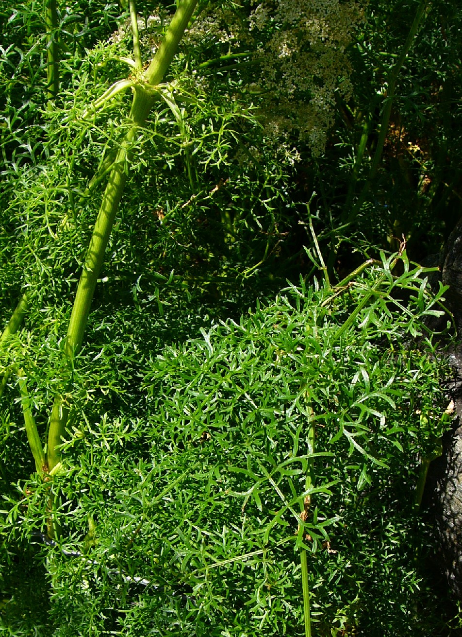 Pflanze 60 - 150 cm groß Hüllblätter meist fehlend Blätter 20 - 50 cm groß, 3 - 5- fach gefiedert Blattabschnitte 2 - 6 mm lang, weniger als 5 mal so lang wie breit