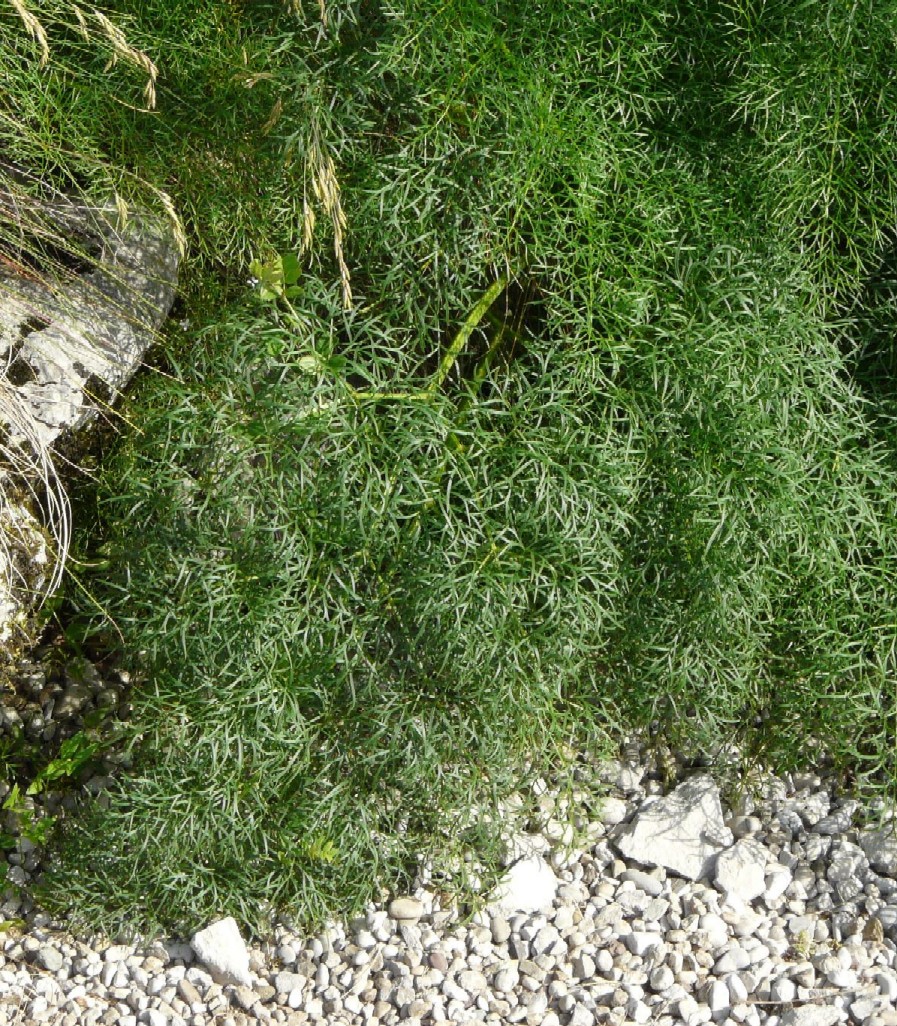 Pflanze 60 - 100 cm groß Dolden mit 10 - 16 Doldenstrahlen Blättchen eirundlich, 1 - 3 mm im Durchmesser