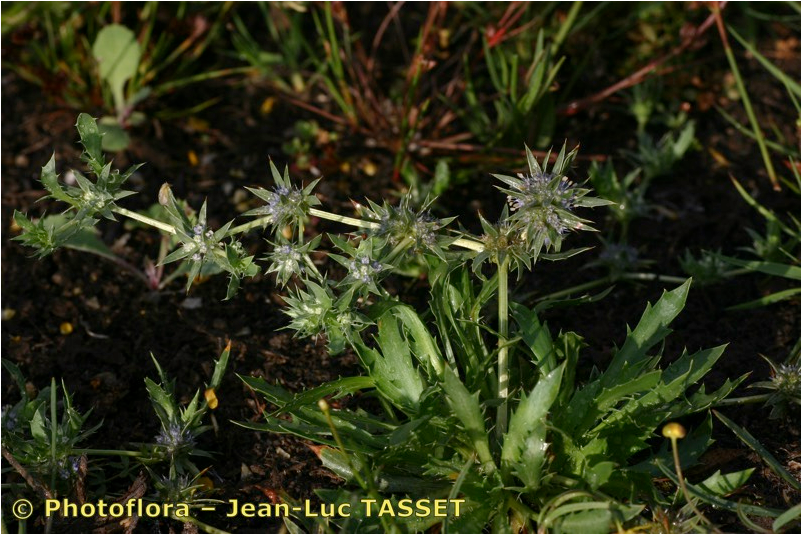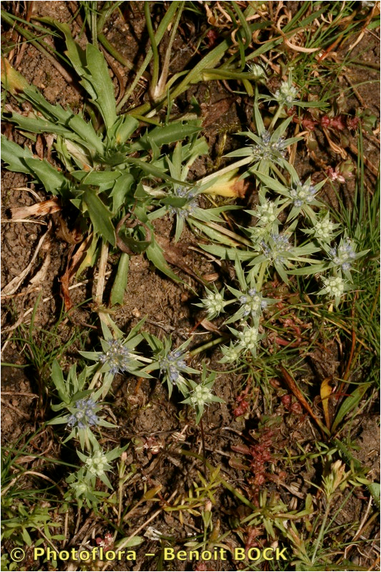 Eryngium- Pflanze niederliegend Blätter netznervig, Hüllblätter lanzettlich