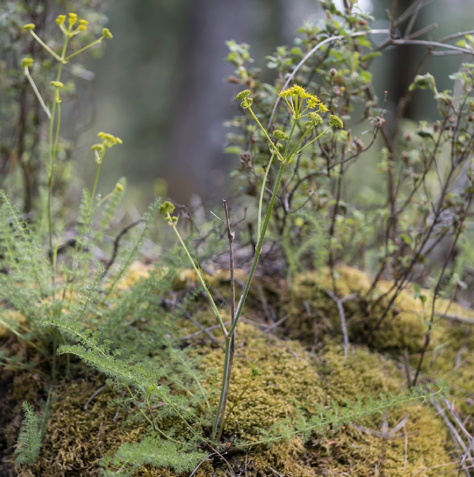 Untere Blätter 10 - 25 cm lang, 1 - 3 cm breit lang, 3 -fach gefiedert, fein zerschlitzt