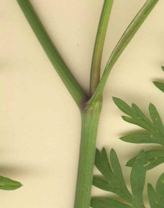 Stängel rund, markig, kahl, im oberen Teil rillig, Blattscheiden klein