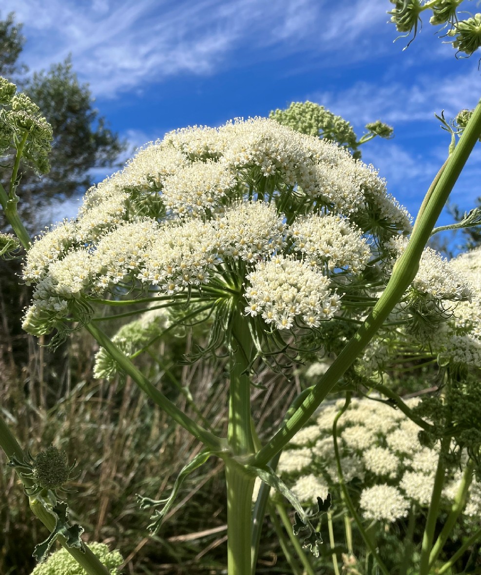 2 Dolden mit 20 - 40 Strahlen, Hüllblätter 30 - 60 mm lang