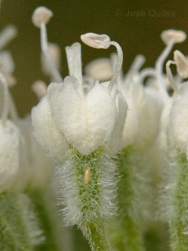 Kronblätter weiß, behaart, nach innen gerollt, Griffelpolster konisch
