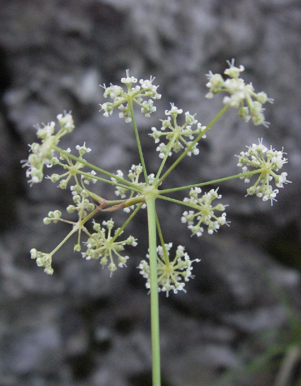Seseli - Blüten weiß, Dolde ohne Hülle oder mit 1 - 3 bald abfallenden Hüllblättern, mit 8 - 25 kahlen Doldenstrahlen, Hüllchenblätter nicht verwachsen, Blätter blaugrün, 2 - 3- fach gefiedert, Fiederabschnitte fädlich
