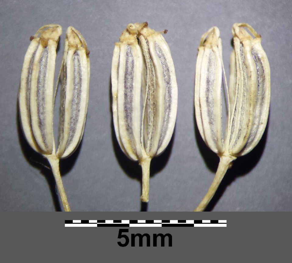 Frucht im Querschnitt mit 2 Ölstriemen zwischen je 2 Rippen