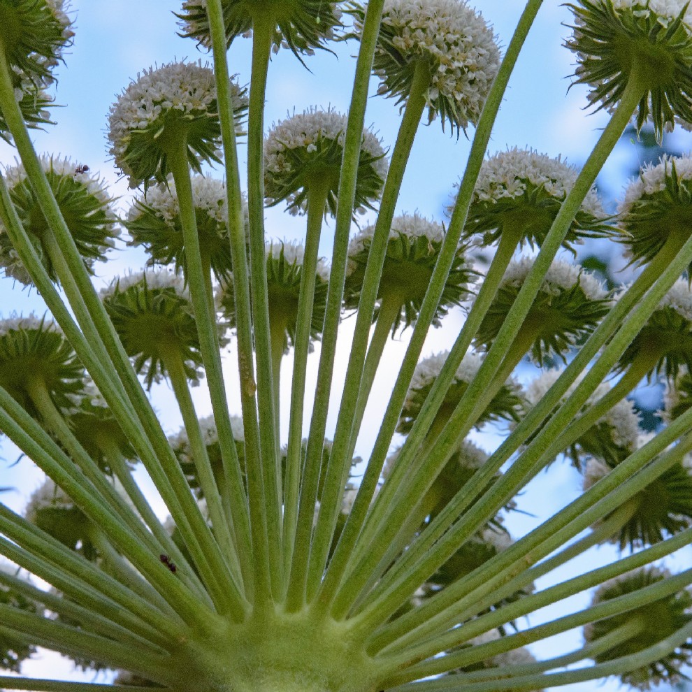 mit wenigen Dolden, Blüten weiß, Dolde mit 20 - 40 Doldenstrahlen, ohne