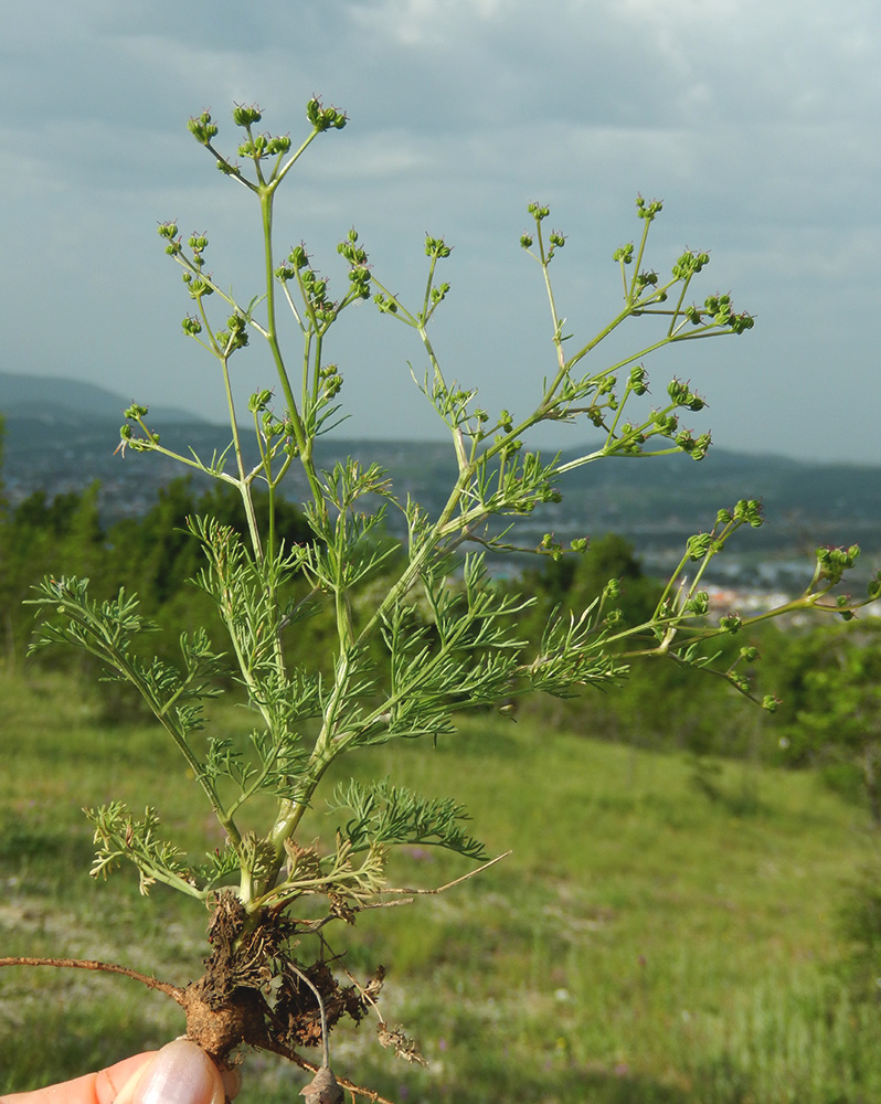 Stängel von Grund an sparrig verzweigt, mit zahlreichen Ästen Dolden 4 - 8- strahlig,