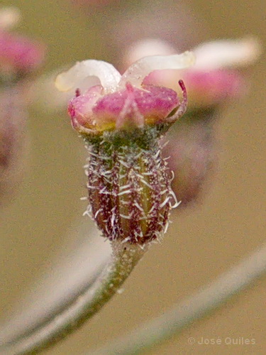 Dolde mit vielen lanzettlichen, am Rand membranösen Hüllblättern, bald nach unten geschlagen, Doldenstrahlen innen rau