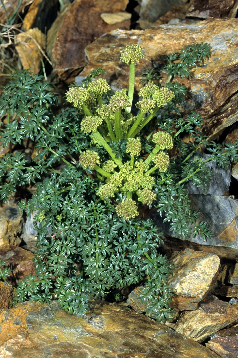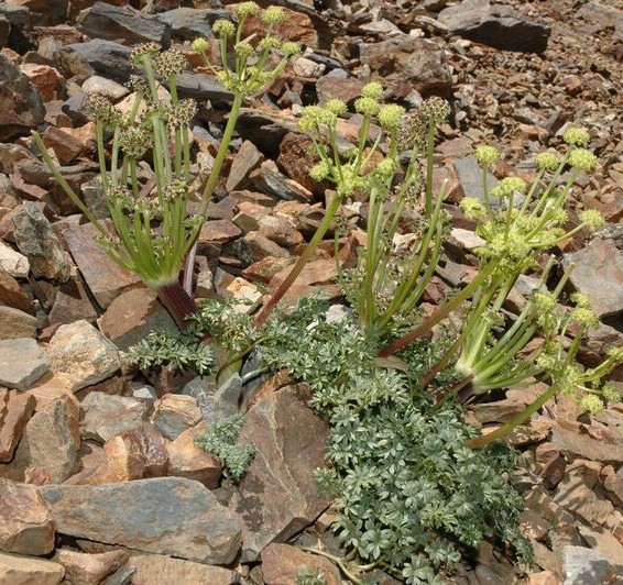 Dolden mit 10 - 15 Doldenstrahlen, ohne Hüllblättern, Doldenstrahlen sehr ungleich, bis 60 mm lang, 2 - 4 mm breit, rau, Döldchen mit ca. 15 Blüten, mit vielen linealischen, hinfälligen Hüllchenblättern