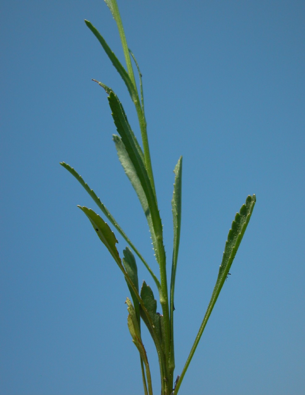 Mittlere Stängelblätter linealisch- lanzettlich, 1 - 5 mm breit, regelmäßig gezähnt