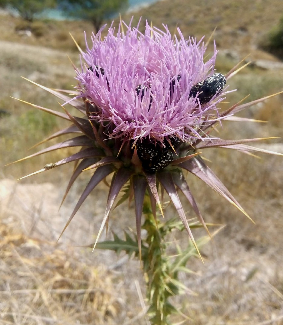 Rosettenblätter länglich - lanzettlich, 6 - 8-paarig fiederteilig, in 2 - 10 mm langen Dornen endend, zur Blütezeit oft undeutlich