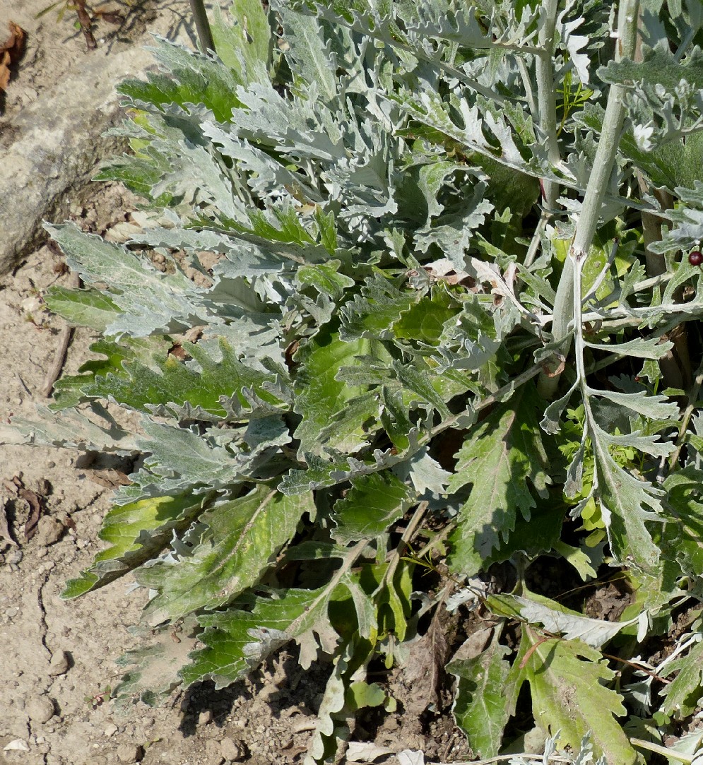3 Pflanzen bis 60 cm hoch, auf Kalk wachsend, Blätter gelappt, ungeteilt oder mit 3 höchstens Fiederabschnitten, beiderseits weißfilzig