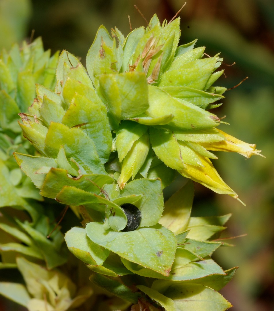 2 Krone zylindrisch, mit oder ohne rotes Band, Rosettenblätter zur Blütezeit meist verwelkt