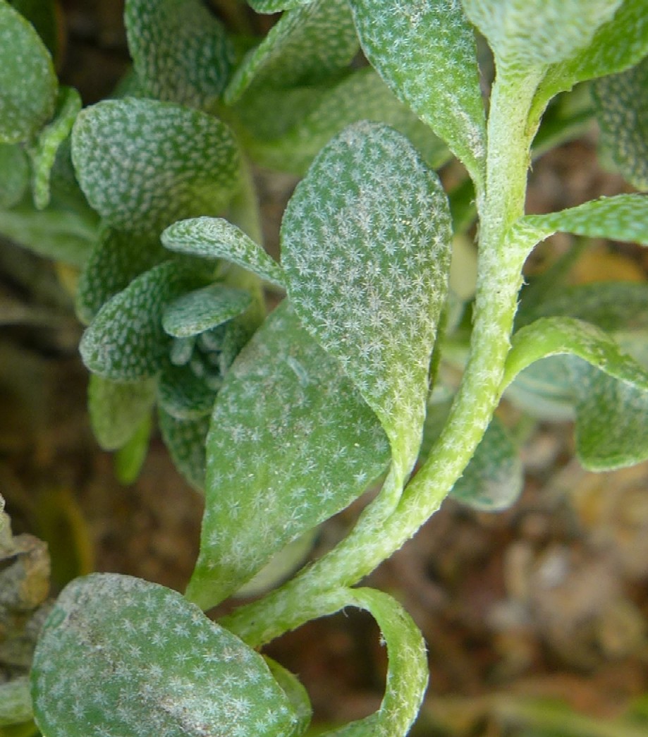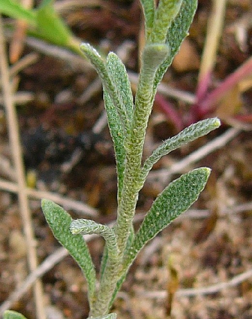 Blätter linealisch bis eiförmig, Unter- und Oberseite weiß durch dichte Sternbehaarung