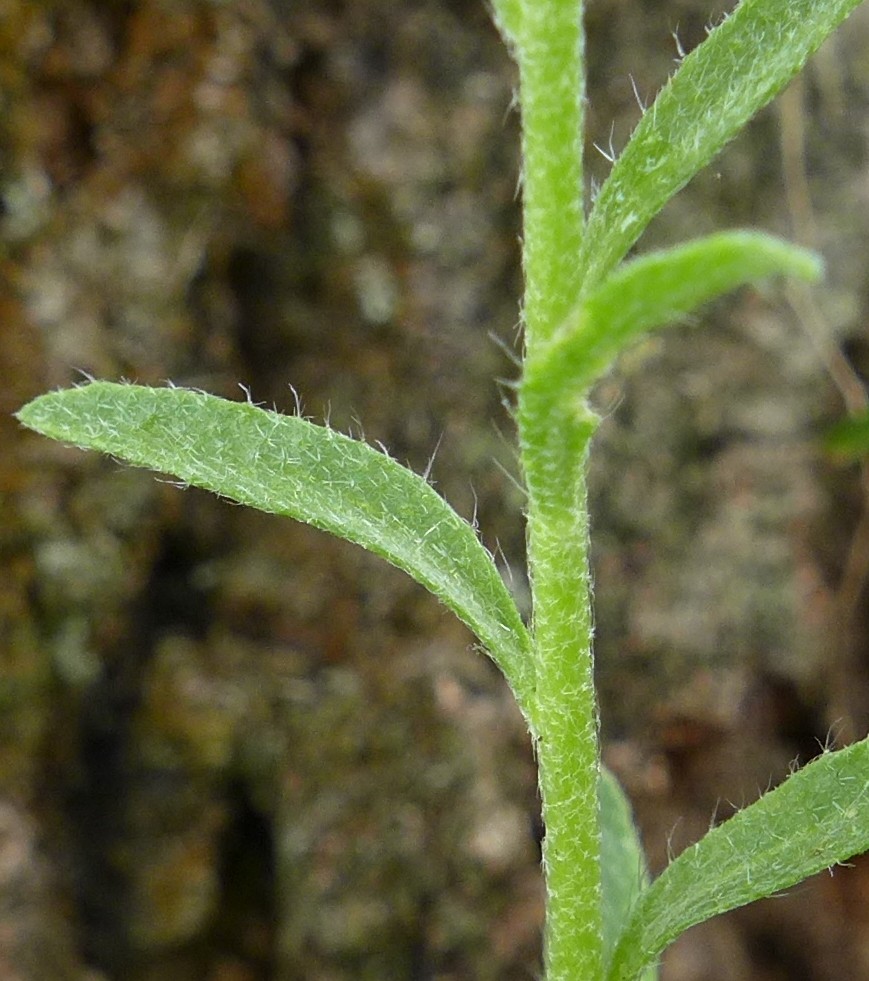 Im oberen Teil des Stängels und auf den Blättern neben Sternhaaren mit etwa gleich langen Strahlen auch solche mit stark verlängerten Strahlen, die dadurch einfache Haare vortäuschen