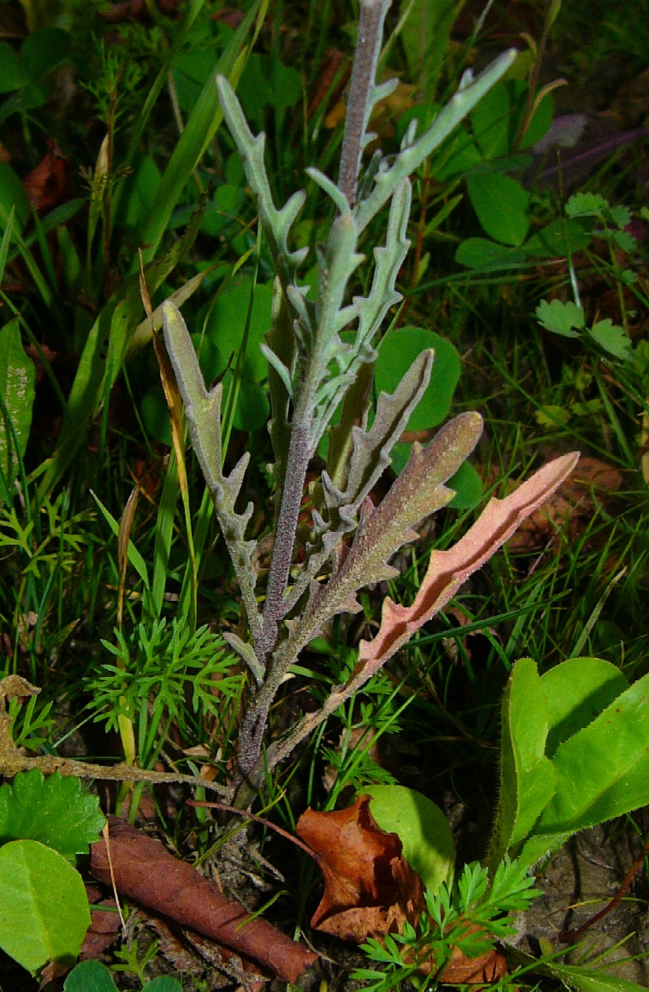 Blätter bis 6 cm lang, gebuchtet bis fiederteilig, graufilzig,