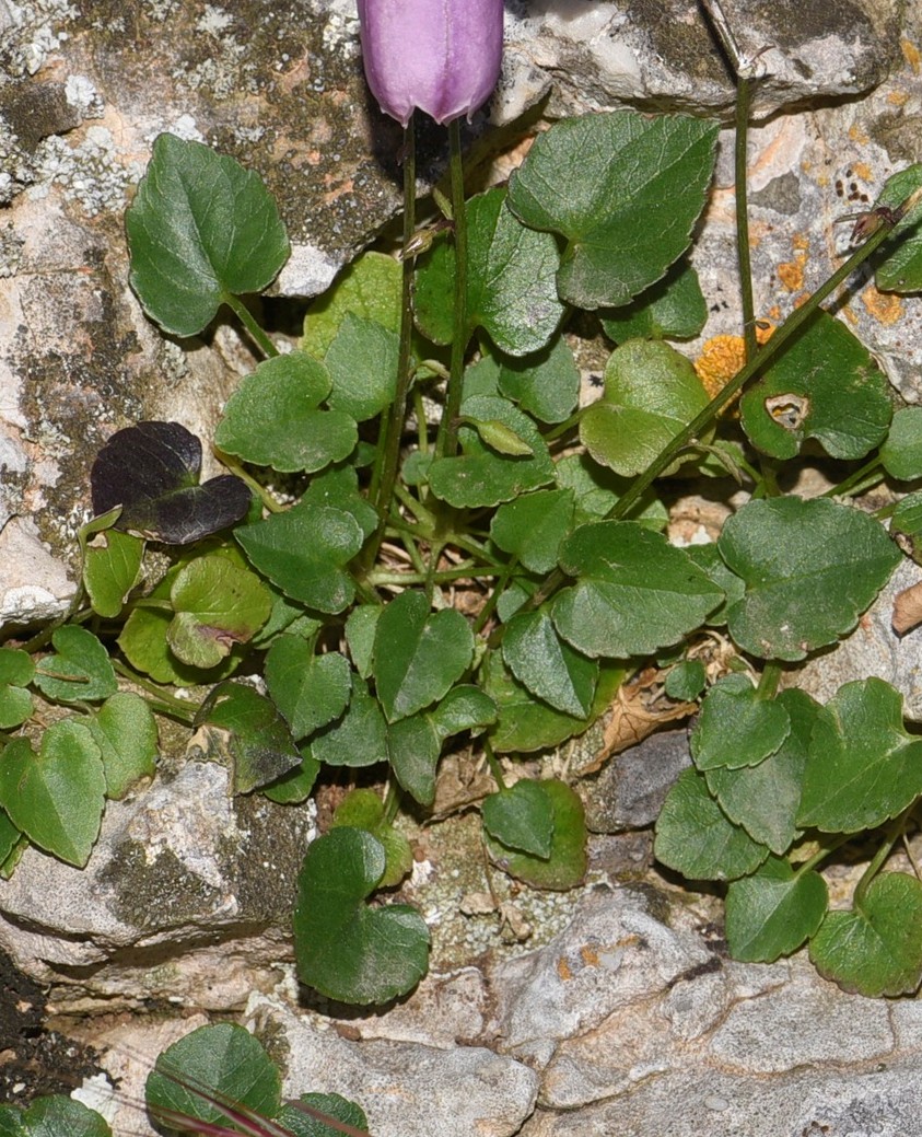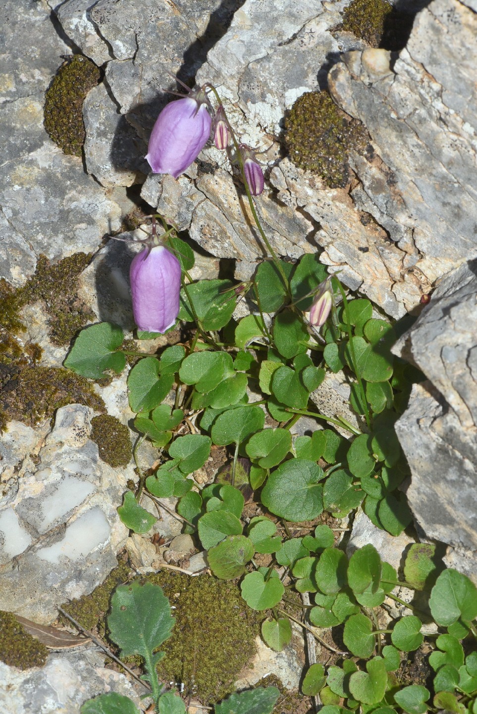 Endemit in Samothraki Stängel 25 - 4 cm hoch, mit 2 - 5 gestielten Stängelblättern Blüten glockig, Kronlappen innen kahl Kelchzipfel spreizend, ganzrandig Hochblätter lanzettlich, so lang oder länger als der Blütenstiel Blattspreite 3 - 6 cm im Durchmesser, regelmäßig gezähnt > 4