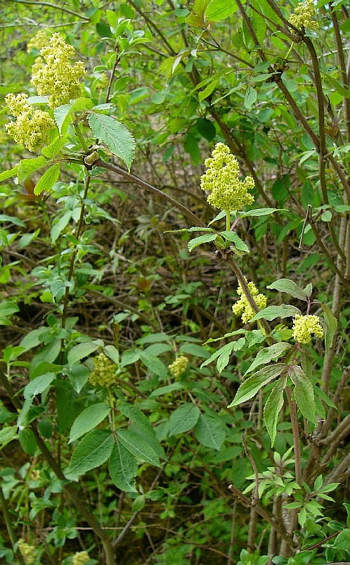 Sambucus racemosa L. (Roter Holunder) IV - V, Waldränder, Gebüschsäume Synonyme: English name: Nom francais: Nome italiano: Verbreitung in Deutschland: Gefährdung in Deutschland: Weltweite Verbreitung: Eingebürgert in: Etymologie: