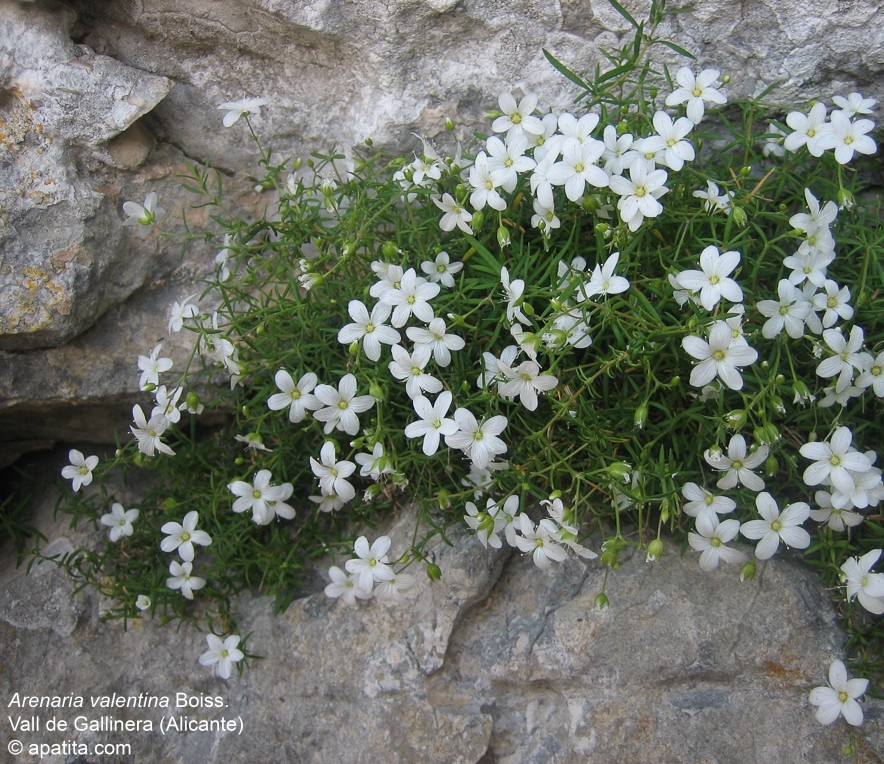 name: Weltweite Verbreitung: Etymologie: Die Unterarten Arenaria grandiflora ssp. bolosii und Arenaria grandiflora ssp. gomarica kommen nur auf Mallorca, die ssp. incrassata kommt nur in Nordspanien vor. Diese 3 Unterarten haben eilanzettliche Blätter. Die Unterart Arenaria grandiflora ssp grandiflora hat linealische Blätter und einen behaarten Kelch