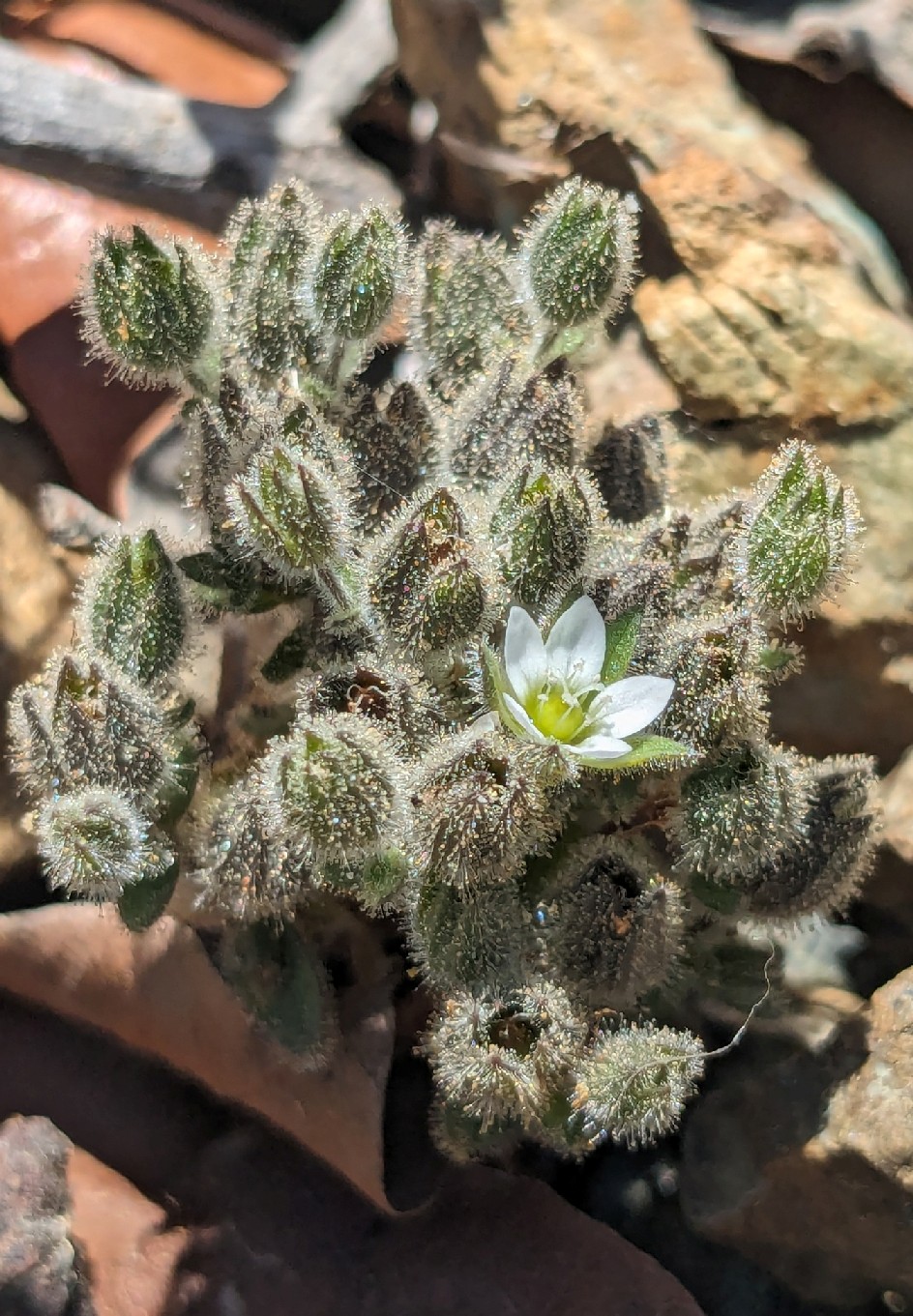 (1000 - 2200 m) Pflanze 2 - 4 cm hoch, kompakt, Blütenstand dicht drüsig langhaarig > Arenaria saponarioides