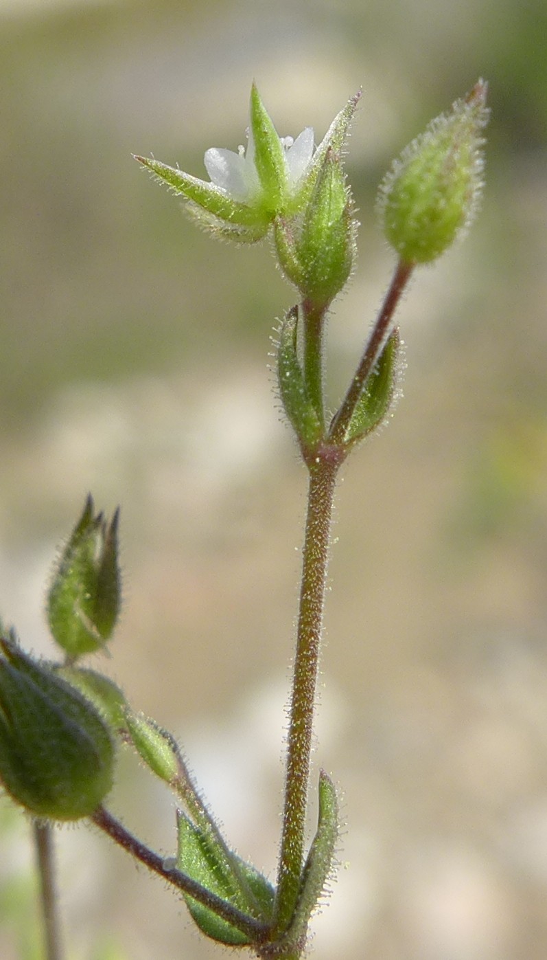 Südspanien (Malaga, Cadiz) Kelchblätter ungleich: die inneren eilanzettlich, die äußeren breit eiförmig, am Rand borstig > Arenaria pomelii