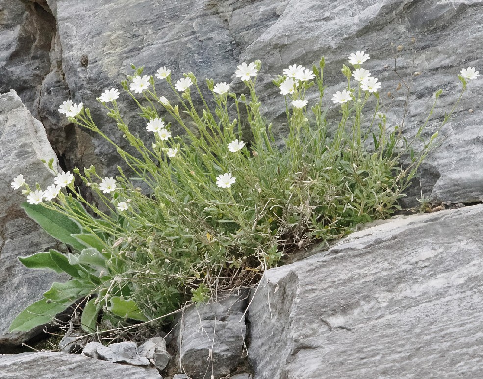 Cerastium - Blüten weiß, 5 Kronblätter, Kronblätter deutlich länger als der Kelch,