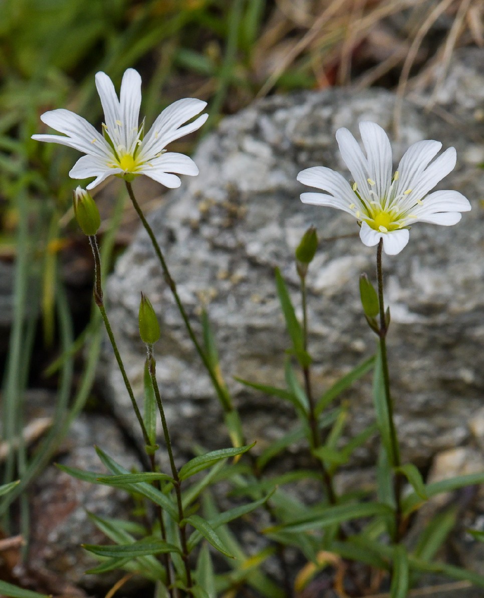 mit 1 - 3 Blüten, Blüten weiß, 5 Kronblätter, Kronblätter deutlich länger als der Kelch
