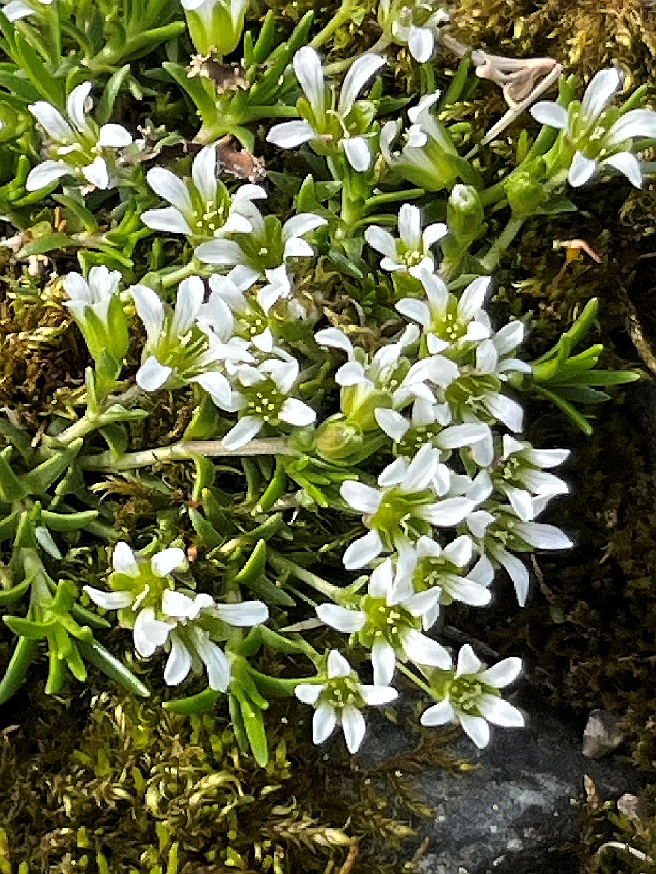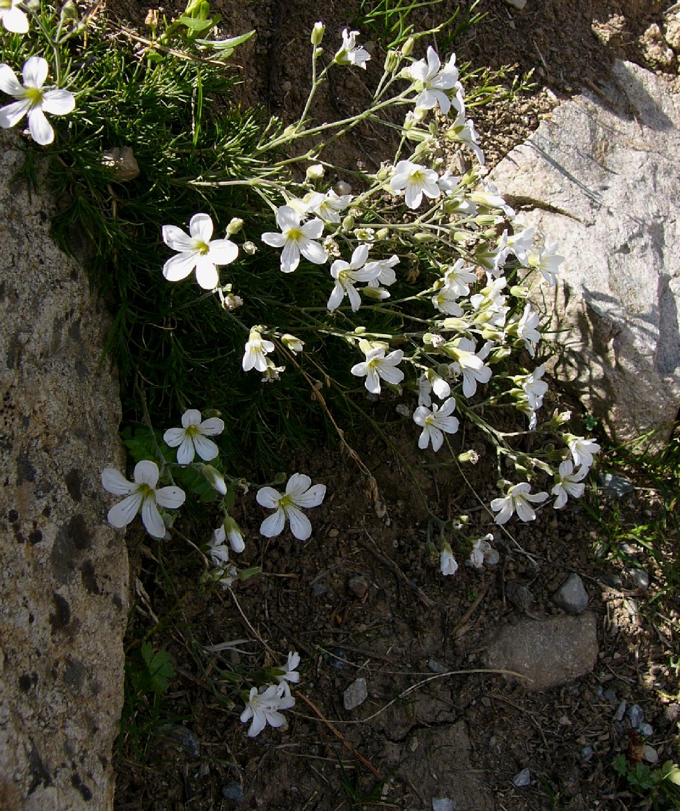 1 Pflanze 3 - 10 cm hoch, dichtrasig, Kronblätter 4 - 7 mm lang, 0,5 - 1 mm breit, Adern undeutlich