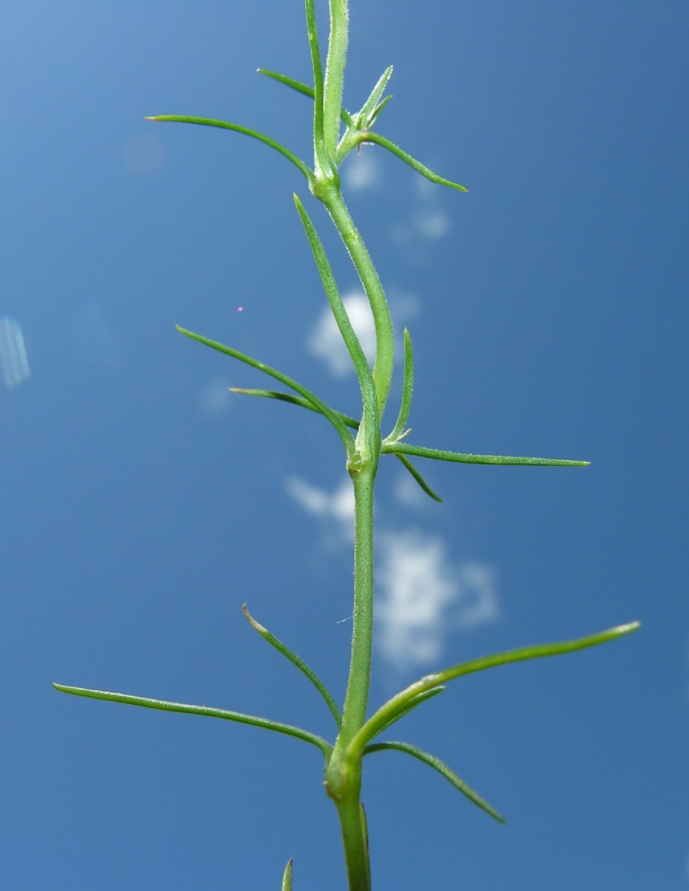 Blätter der fertilen Sprosse 10 - 20 mm lang, 0,5 mm breit, linealisch, steif