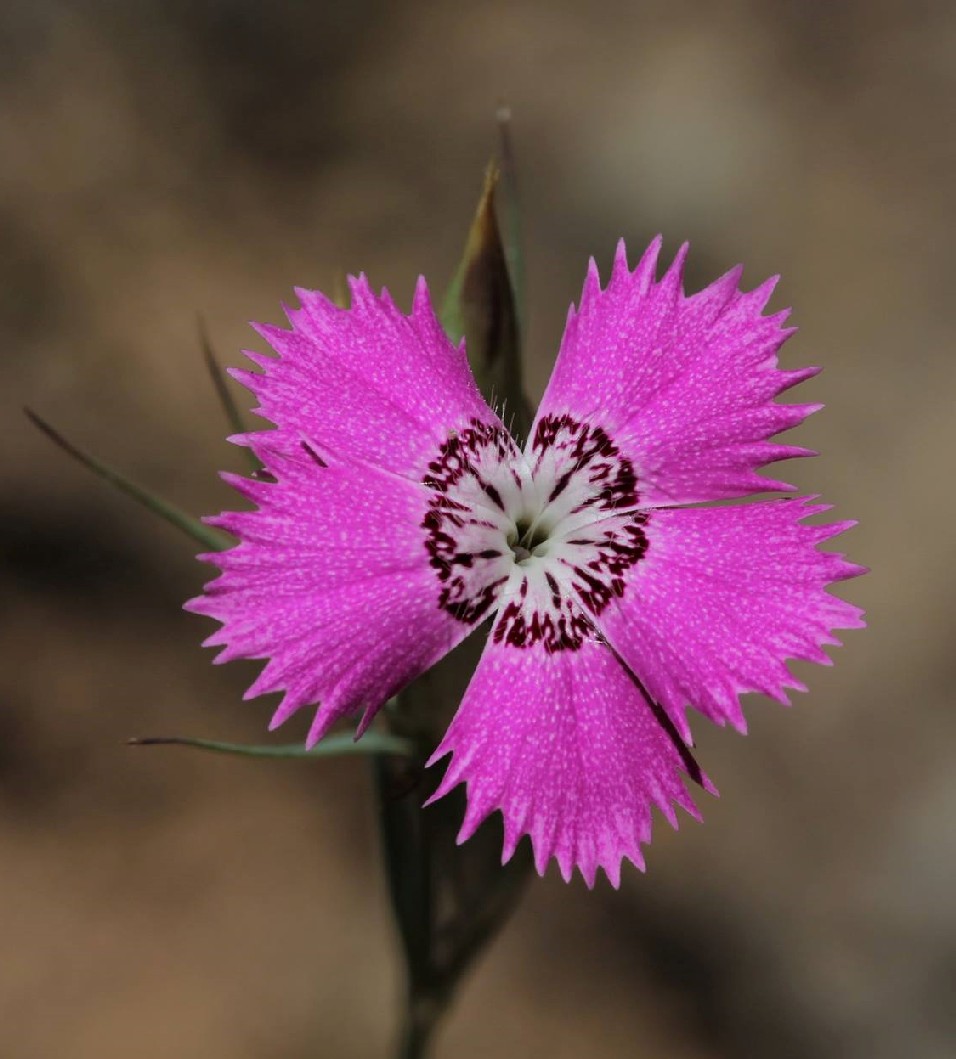 Dianthus- Pflanze kahl, Kronblätter rot,