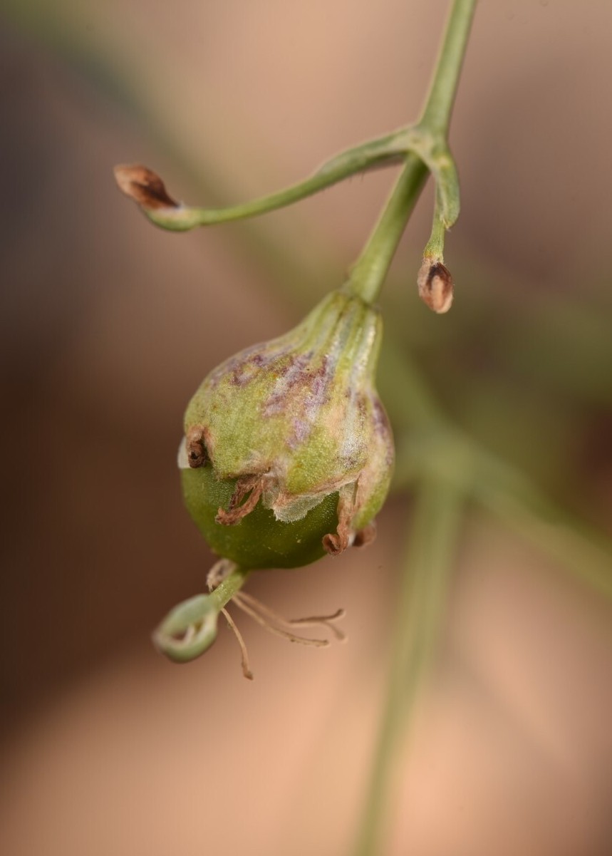 Kapsel 7 -10 mm lang, breit eiförmig, etwas aus dem Kelch ragend