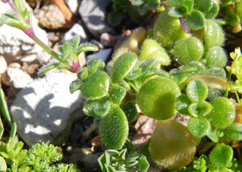 5 Pflanze niederliegend, untere Blätter breit spatelförmig, bis 18 mm breit, fleischig