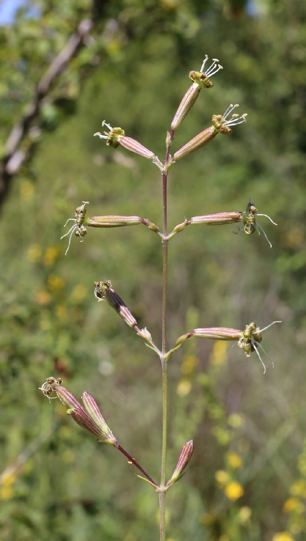 Silene - Blüten beiderseits gelbgrün, Kelch kahl, walzlich, 9 - 12 mm lang