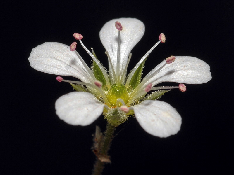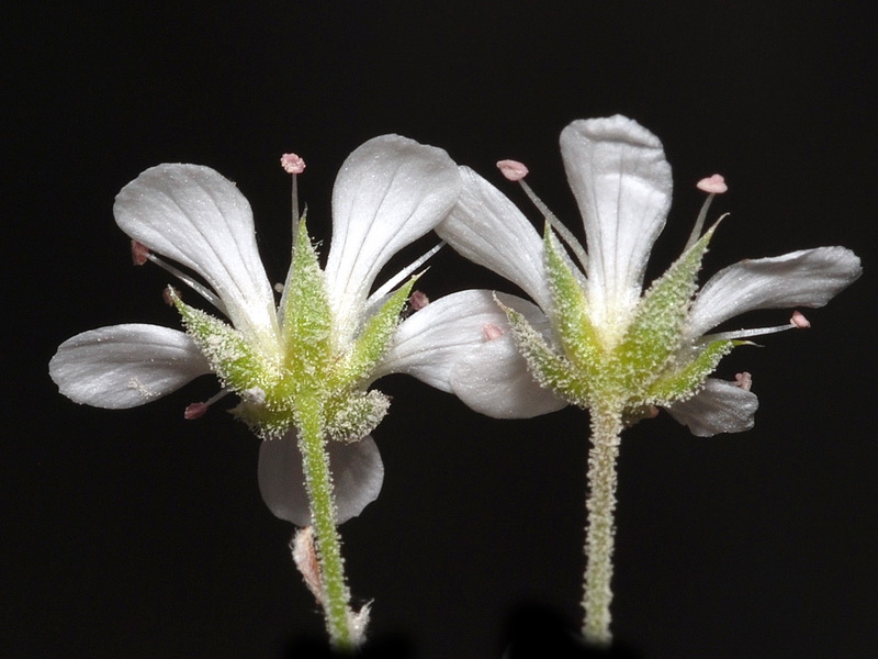 Blüten weiß, Kronblätter 5 - 10 mm lang, vorne abgerundet, länger als die Kelchblätter, meist nicht deckend, Staubblätter ca. 1 mm lang, Staubbeutel weiß oder rosa