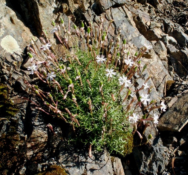 Die Unterart Silene parnassica ssp. vourinensis besitzt einen behaarten Kelch