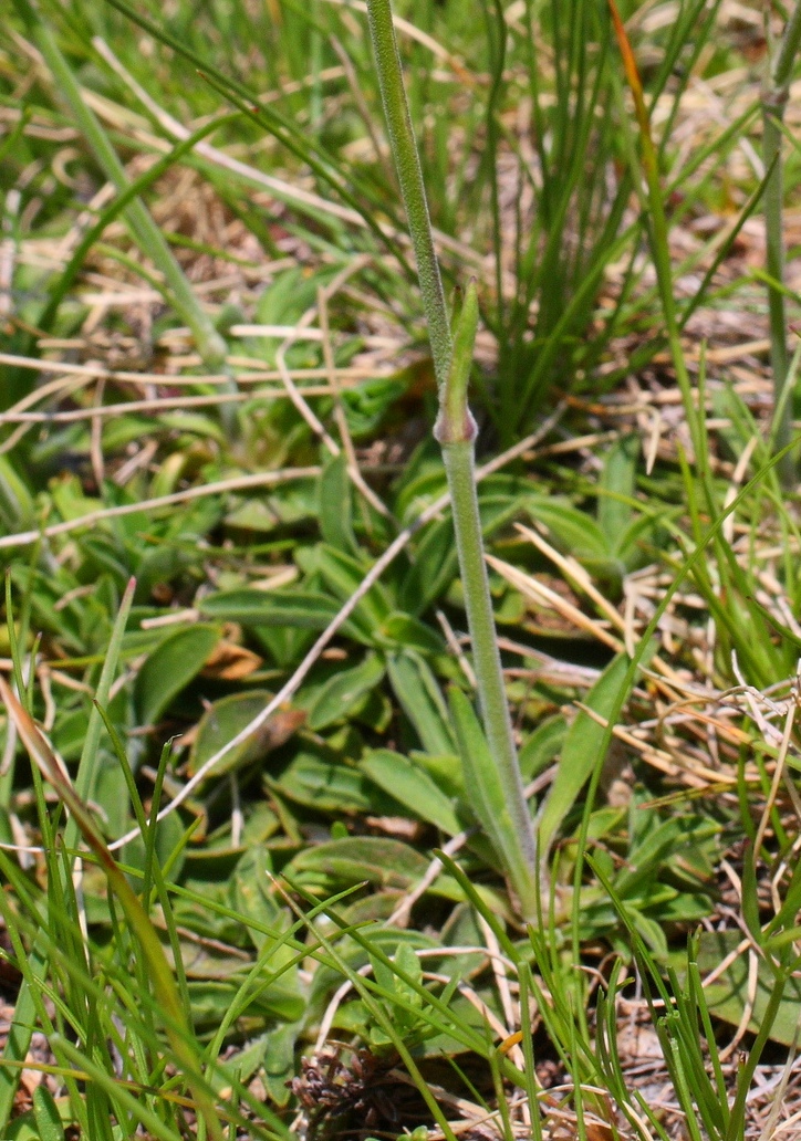 , Grundblätter rosettig, eispatelig, lang gestielt, oberseits spärlich, unterseits dichter behaart