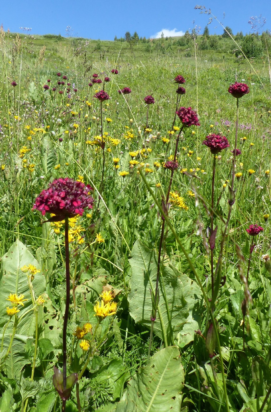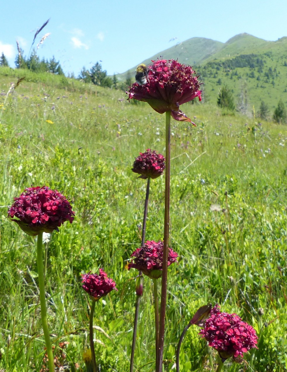 Blüten dunkelrot, in dichten Köpfchen > 1