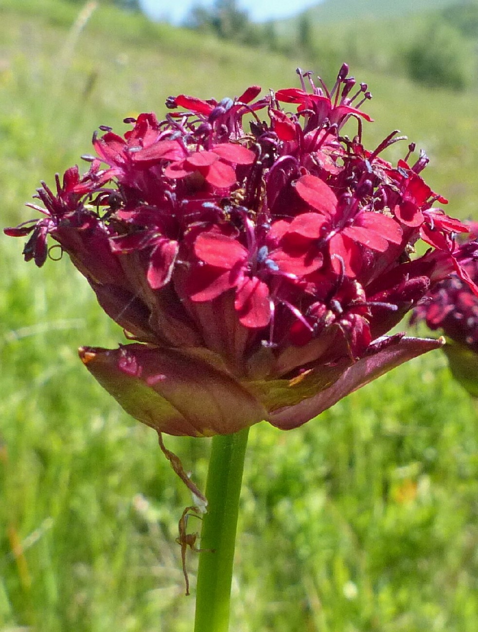 1 Blüten dunkelrot, in dichten Köpfchen