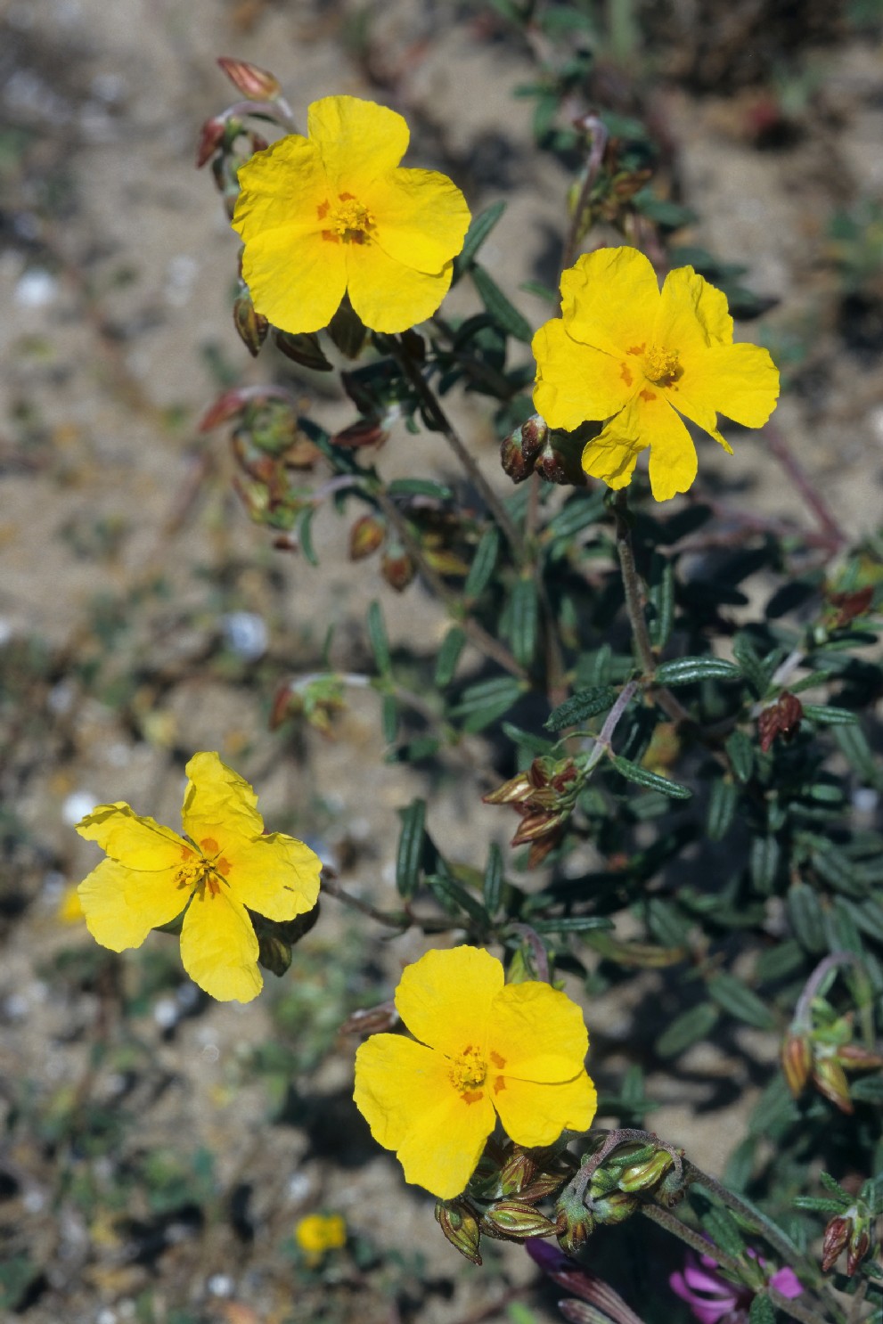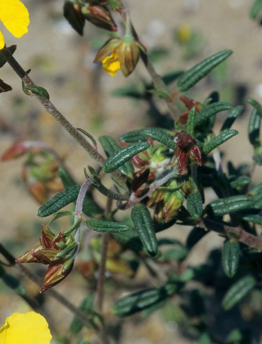 Helianthemum - Blüten gelb, länger als die Kelchblätter, innere Kelchblätter behaart, mit erhabenen Adern, Außenkelchblätter kürzer als die inneren, Blätter +/- lanzettlich, obersits mit einfachen Haaren, mit Nebenblättern