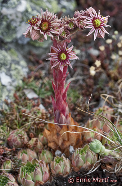 1 Endemit der Sierra Nevada, Spanien, Rosetten 3 cm im Durchmesser, Blätter max. 7 mm breit